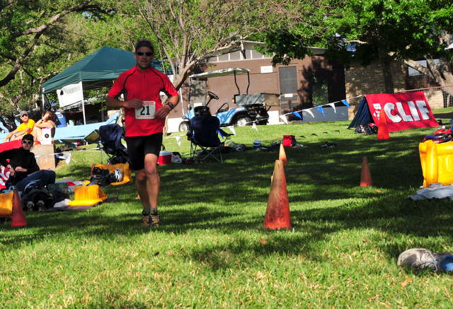 brewer arrived at some point, and after moving locations in the transition area a couple of times (I'm odd like that), we began preparing our gear--getting shoes and socks ready... attaching numbers to jerseys... loading up on random electrolyte pills and ShotBloks touted as providing more energy and endurance.