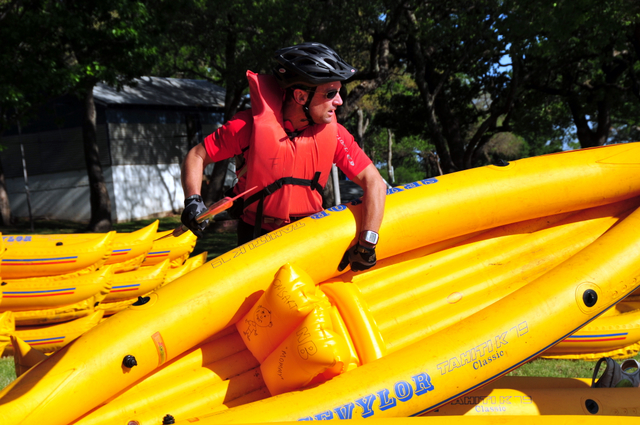 flotation device... aka "life vest") the best I could, wedged my seat into the kayak, and grabbed a paddle before lugging the inflatable kayak to the water's edge.