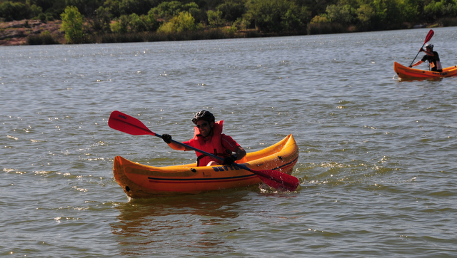 After a few telephone calls and email exchanges trying to figure out where I would sleep Friday evening, Kathy called me back and said they had three spots reserved on the other side of the lake at Inks Lake State Park. Basically, that's where some folks would be storing their bikes for the evening, because part of the race was to paddle across the lake then hop on the bikes for the mountain-biking section.