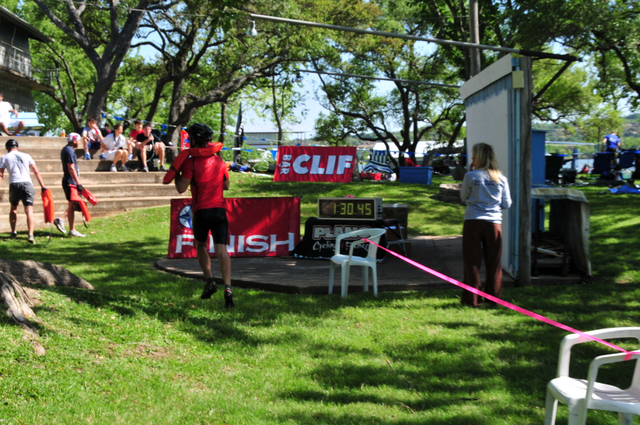 After a very brief swim, I climbed out of the water to begin the very short sprint to the finish line.